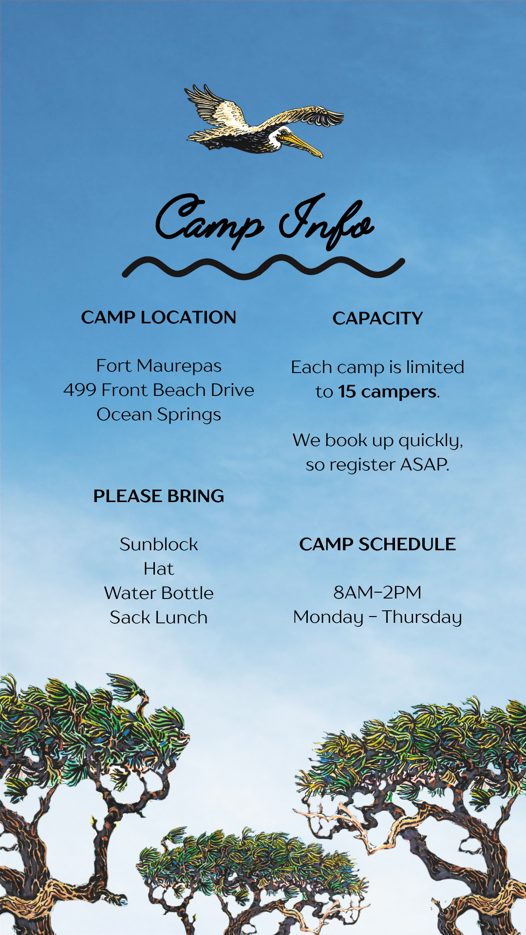 Camp Schedule 8AM-2PM Monday-Thursday