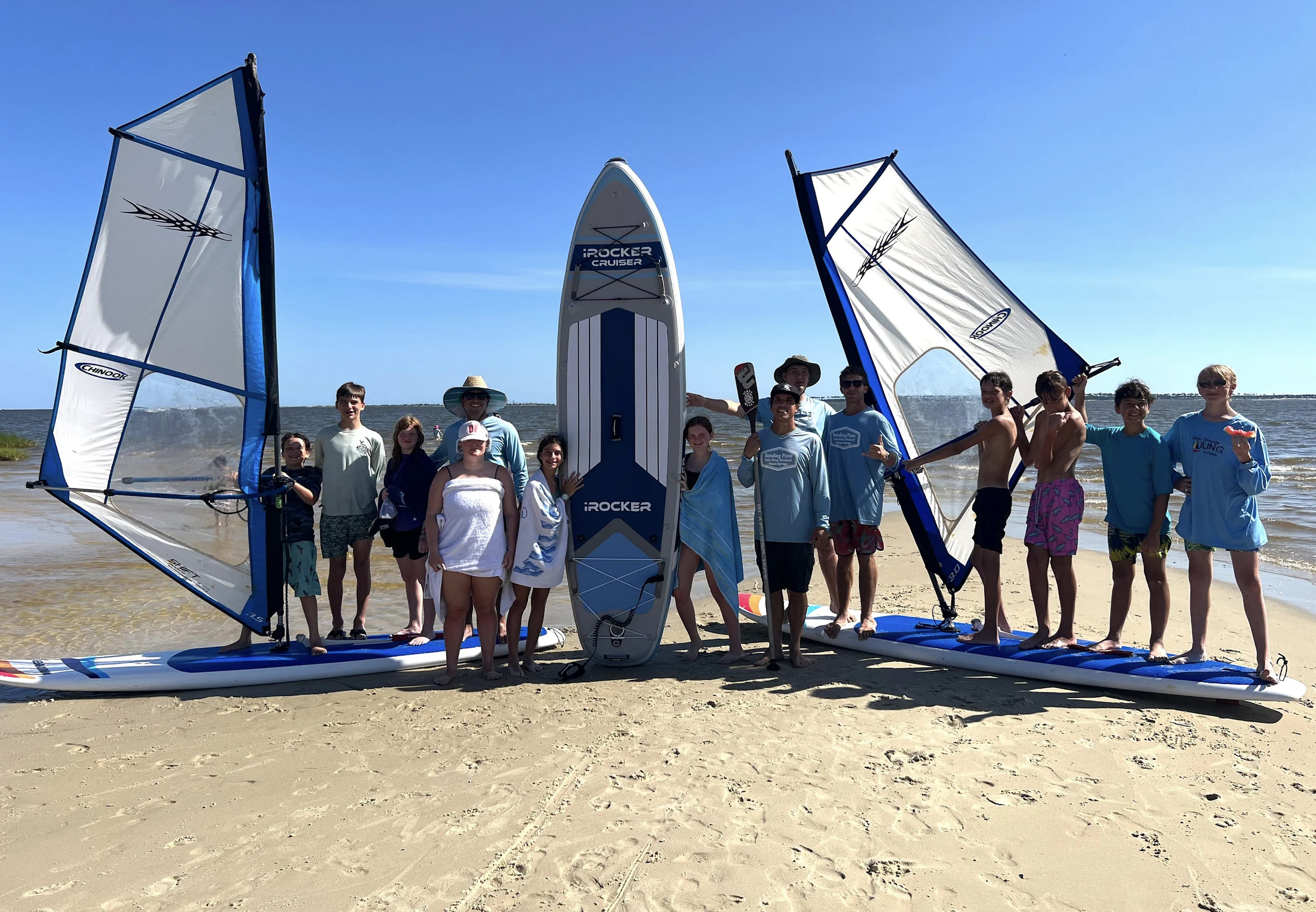 Bending Pines Summer Camp introduces young adventurers to the world of wind and water through hands-on experiences with windsurfing, wing foiling, beach games, and ocean exploration along the Mississippi Gulf Coast.